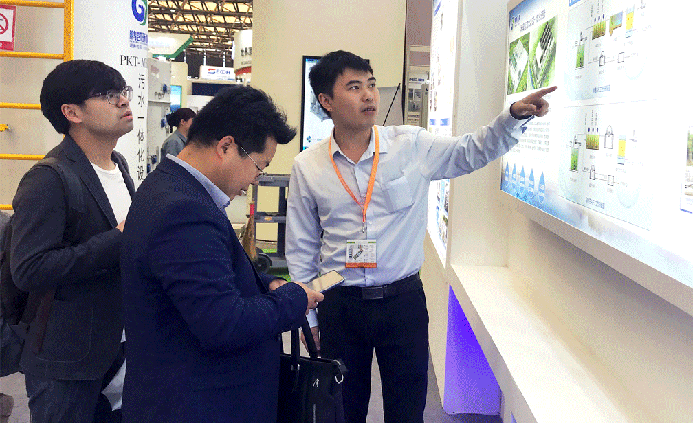 由鵬凱環(huán)境自主研發(fā)的“鵬凱塔”(PK Tower)、E-Co-Tank 一體化裝置等一體化污水處理設備,受到環(huán)保領域、社會各界人士的一致好評,紛紛駐足觀看并與鵬凱環(huán)境現場人員進行詳細的技術溝通交流與業(yè)務合作。