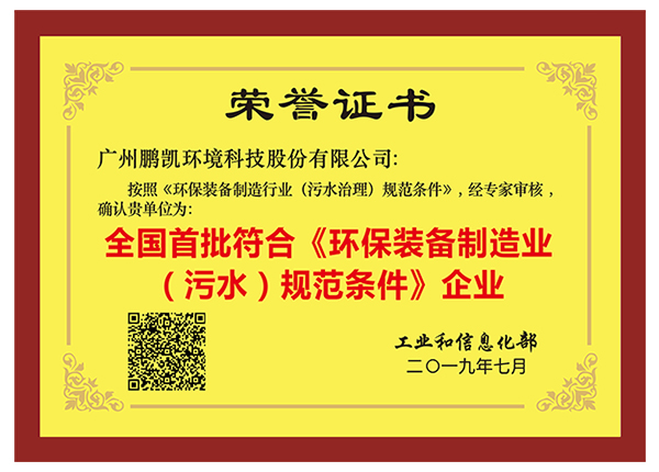 全國首批符合《環(huán)保裝備制造業(yè)(污水)規(guī)范條件》企業(yè)