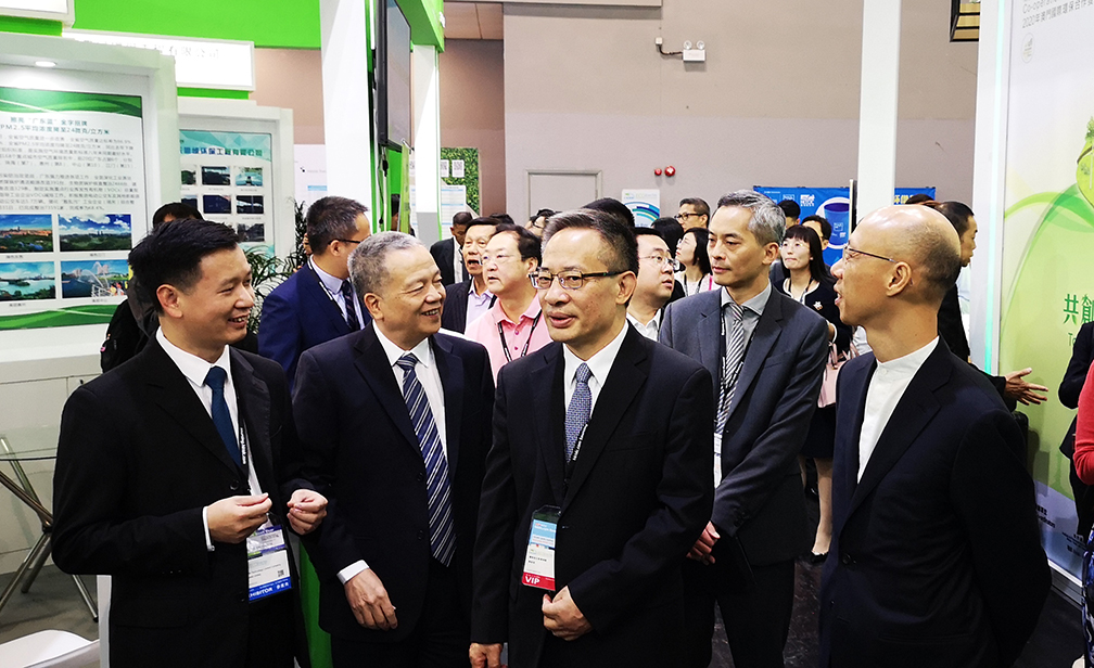 香港特區(qū)政府環(huán)境局黃錦星局長、廣東省生態(tài)環(huán)境廳魯修祿廳長、廣東省環(huán)保產(chǎn)業(yè)協(xié)會(huì)區(qū)岳州會(huì)長等領(lǐng)導(dǎo)一行蒞臨廣州鵬凱展臺(tái)參觀指導(dǎo)工作。