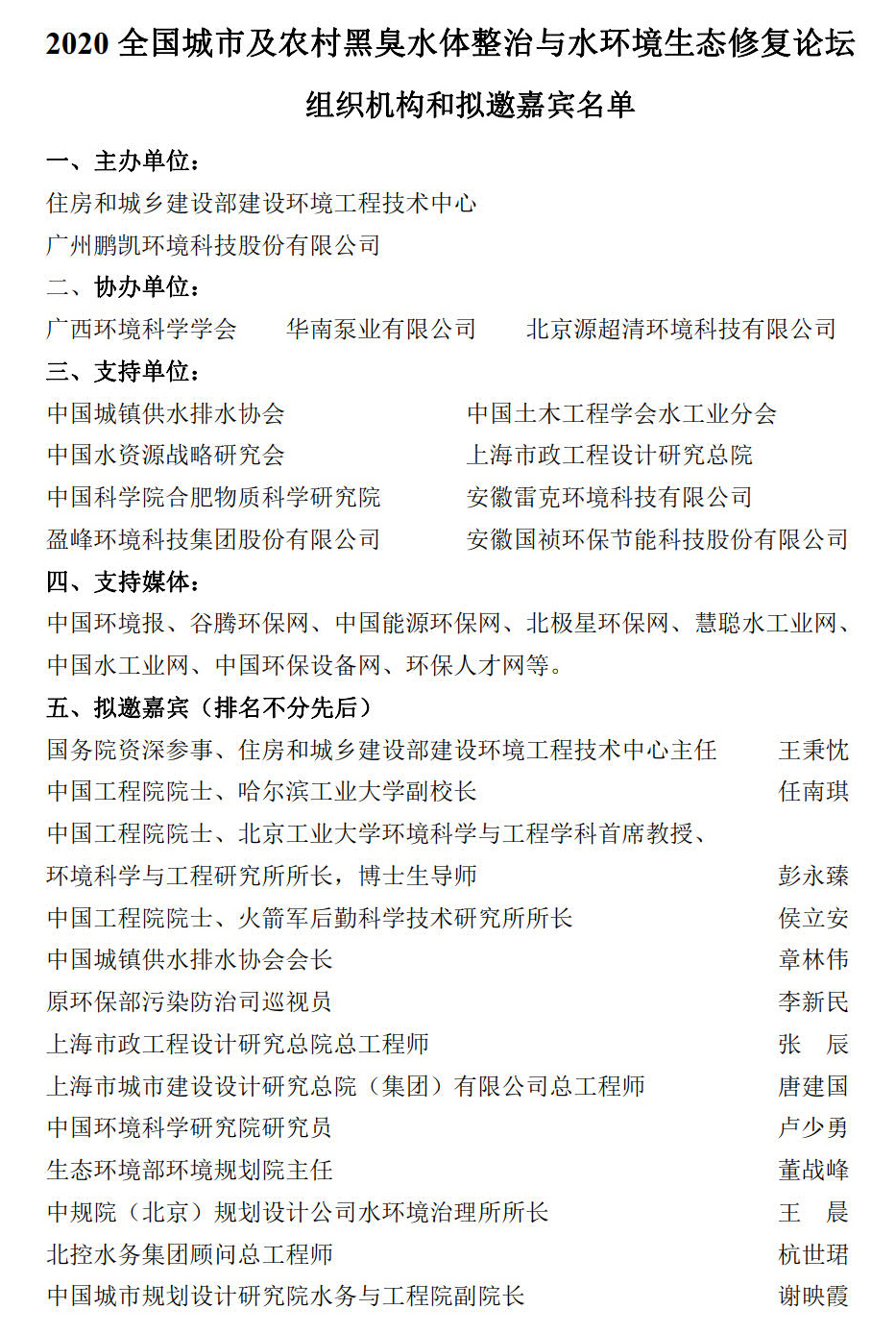 《2020全國城市及農(nóng)村黑臭水體整治與水環(huán)境生態(tài)修復論壇組織架構和擬邀嘉賓名單》