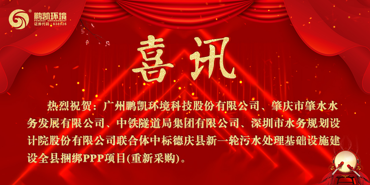 喜訊丨鵬凱環(huán)境聯(lián)合體中標德慶縣新一輪污水處理基礎(chǔ)設(shè)施建設(shè)全縣捆綁PPP項目(重新采購)