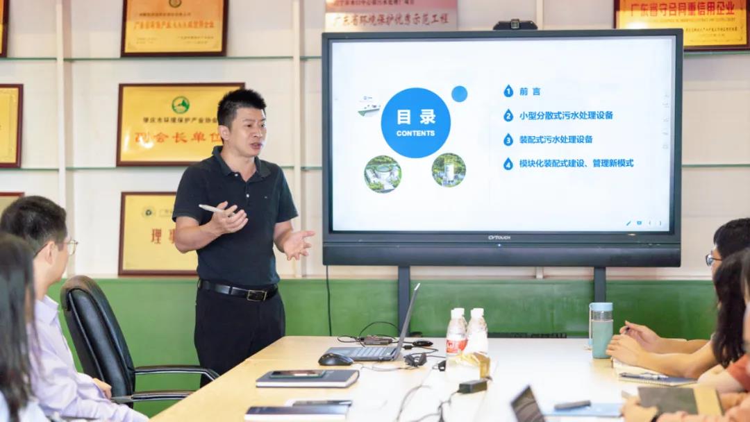 研討會上,鵬凱環(huán)境王國彬董事長向項目組學(xué)生重點講述鵬凱圓-模塊化(裝配式)污水處理系統(tǒng)的創(chuàng)新技術(shù)反應(yīng)機理與關(guān)鍵路線,并以沉水園項目為例,多層面、多角度地展示了該工藝在技術(shù)科研方面的新突破及其在實際項目中的實施效果、綜合優(yōu)勢。