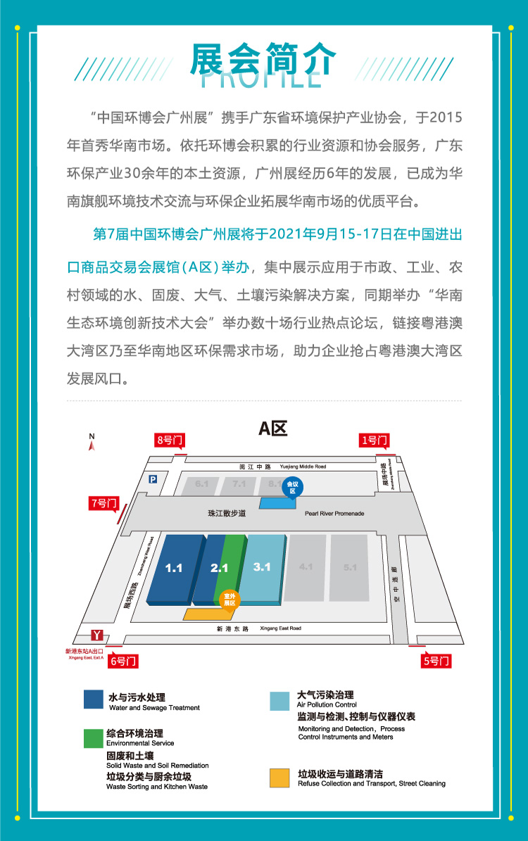 第七屆中國環(huán)博會廣州展將于2021年9月15-17日在廣東廣州·中國進出口商品交易會展館(A區(qū))舉辦,集中展示應(yīng)用于市政、工業(yè)、農(nóng)業(yè)領(lǐng)域的水、固廢、大氣、土壤污染解決方案,同期舉辦“華南生態(tài)環(huán)境創(chuàng)新技術(shù)大會”,下設(shè)數(shù)十場行業(yè)熱點論壇,鏈接粵港澳大灣區(qū)乃至華南地區(qū)環(huán)保需求市場,助力企業(yè)搶占粵港澳大灣區(qū)發(fā)展風(fēng)口。