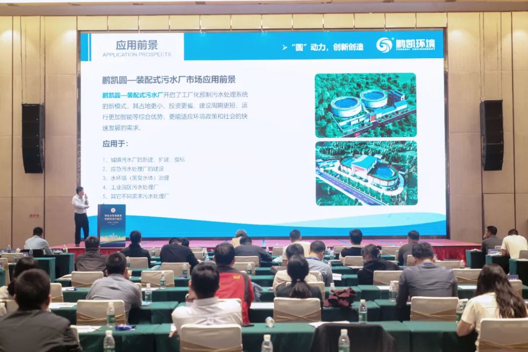 隨著我國(guó)環(huán)保政策舉措的不斷加力,水環(huán)境污染治理的需求市場(chǎng)越來(lái)越大,極大地激發(fā)了企業(yè)對(duì)研發(fā)新技術(shù)、新工藝、新裝備的動(dòng)力,技術(shù)創(chuàng)新成為了提升企業(yè)核心競(jìng)爭(zhēng)力最直接、最關(guān)鍵而有效的途徑之一。如何讓技術(shù)創(chuàng)新產(chǎn)生內(nèi)生價(jià)值?如何解決行業(yè)困境難題,激發(fā)創(chuàng)新活力?當(dāng)天下午,鵬凱環(huán)境市場(chǎng)總監(jiān)龍葉茂先生作《低碳型裝配式污水處理系統(tǒng)探索與實(shí)踐》主題演講,向與會(huì)者就鵬凱環(huán)境水環(huán)境治理技術(shù)及模式創(chuàng)新等方面進(jìn)行了深度分享。
