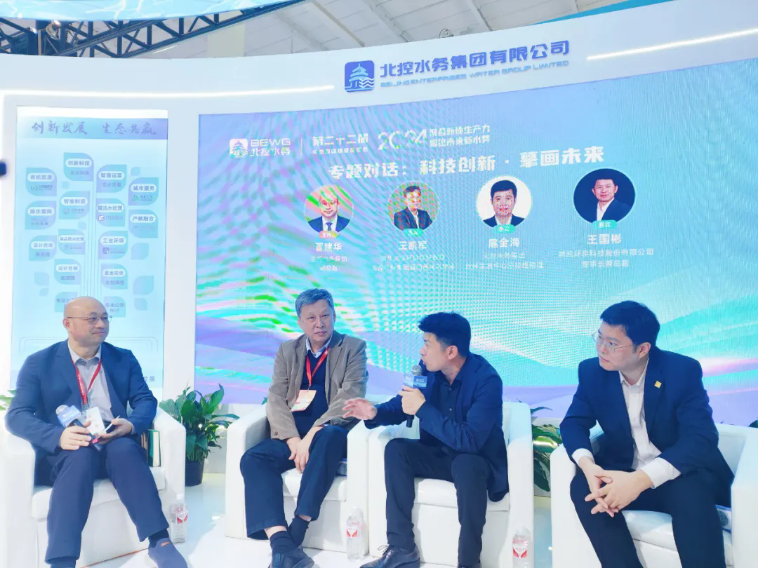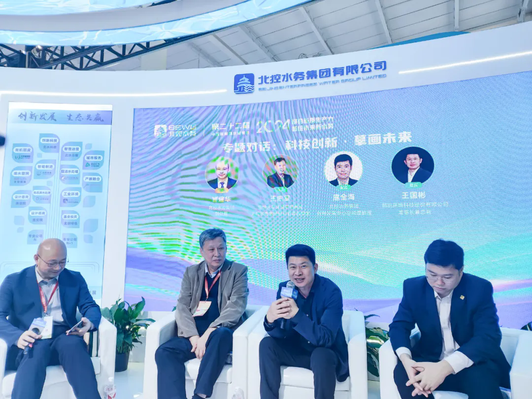 在北控水務集團主辦的“科技創(chuàng)新·摹畫未來”專題對話環(huán)節(jié)中,鵬凱環(huán)境董事長兼總裁王國彬作為對話嘉賓參與活動。他從創(chuàng)新創(chuàng)業(yè)的視角,結合自身的實際經驗,分享了鵬凱環(huán)境如何通過科技創(chuàng)新和產業(yè)化戰(zhàn)略推動企業(yè)、環(huán)保行業(yè)升級發(fā)展,強調了科技創(chuàng)新驅動在解決環(huán)保問題及產業(yè)升級上的關鍵作用。他指出鵬凱環(huán)境始終緊跟市場需求,著力于技術創(chuàng)新突破和成果轉化,已在污水處理、資源化利用等方面取得突破性進展,并將加快培育高質量發(fā)展新動能,為生態(tài)文明建設貢獻更大力量。