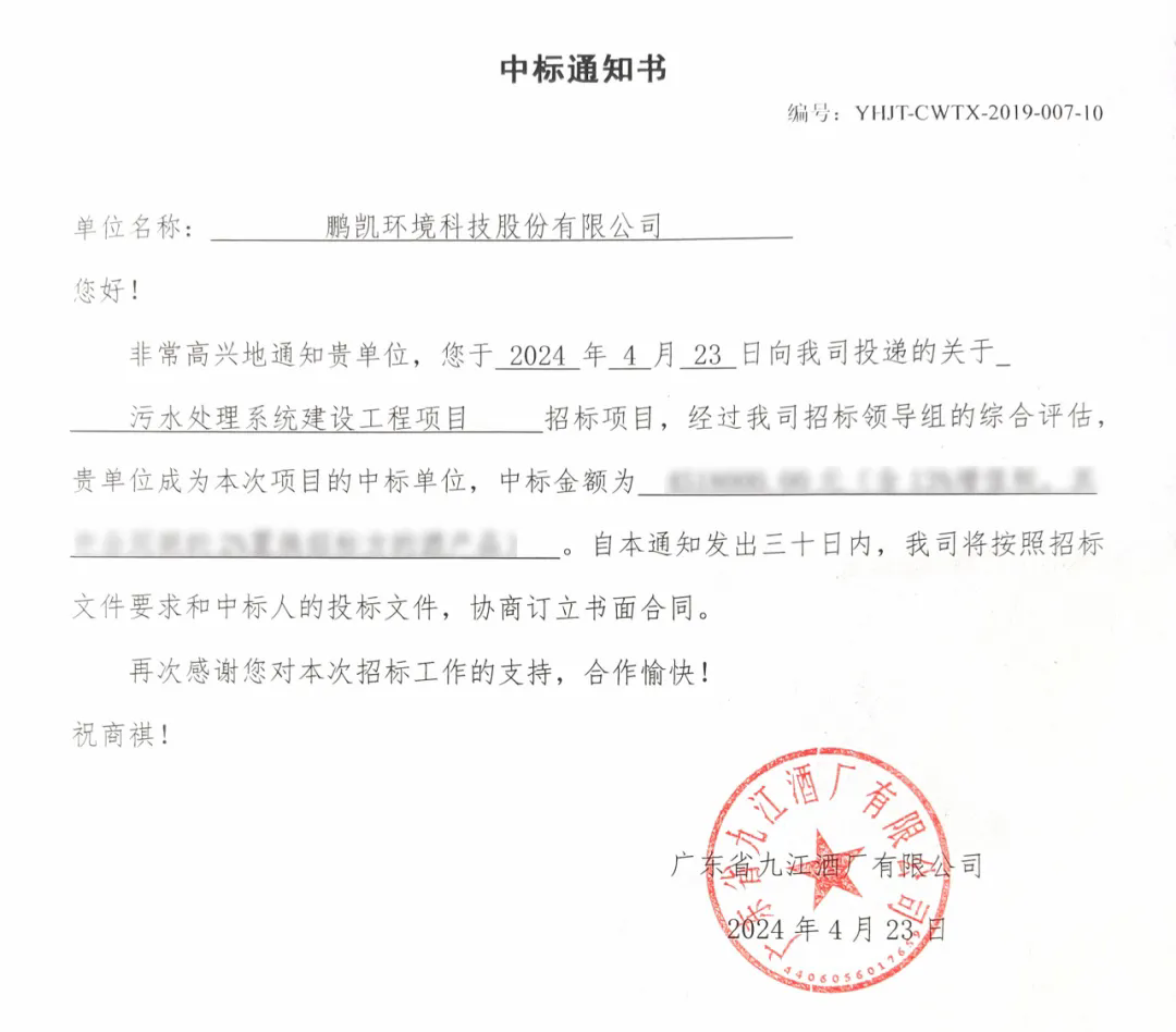 精益求精展實力,勠力同心鑄佳績。鵬凱環(huán)境憑借卓越的技術(shù)實力與豐富的實踐經(jīng)驗,成功中標廣東省九江酒廠有限公司污水處理系統(tǒng)建設(shè)工程項目。此次中標不僅意味著鵬凱環(huán)境成功涉足豉香型酒類廢水處理領(lǐng)域,拓寬了不同香型酒類廢水處理的服務(wù)范疇,更標志著我司在多元化酒類廢水處理技術(shù)層面上實現(xiàn)了重要的能力提升與實質(zhì)性的戰(zhàn)略拓展。