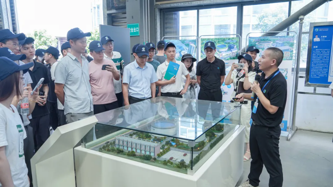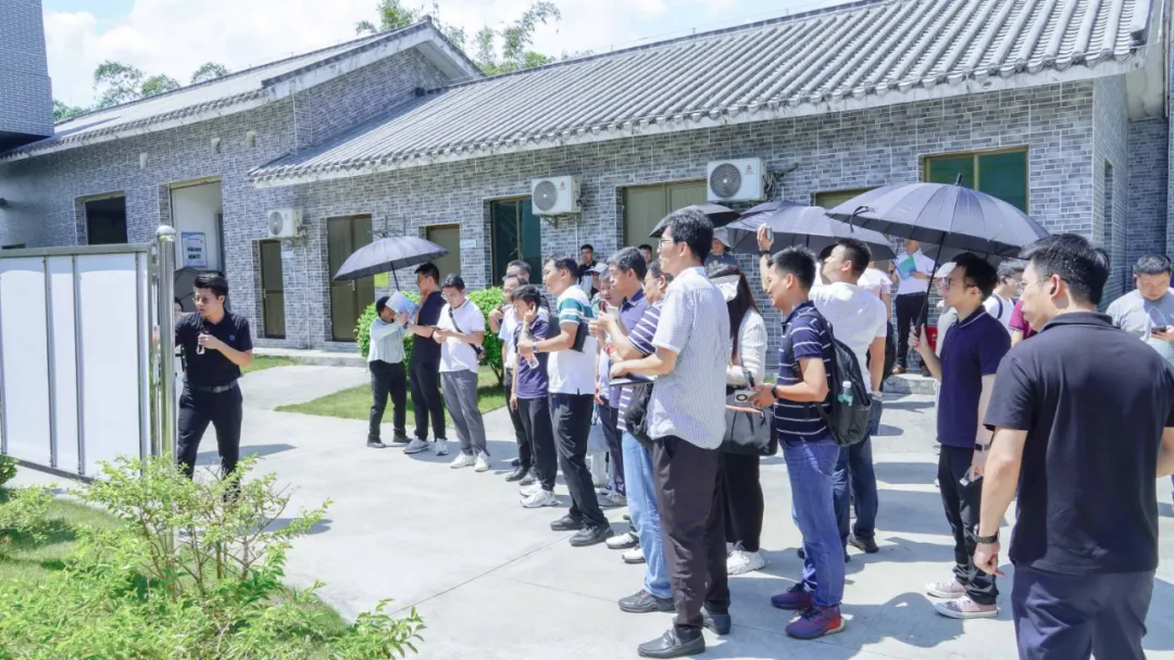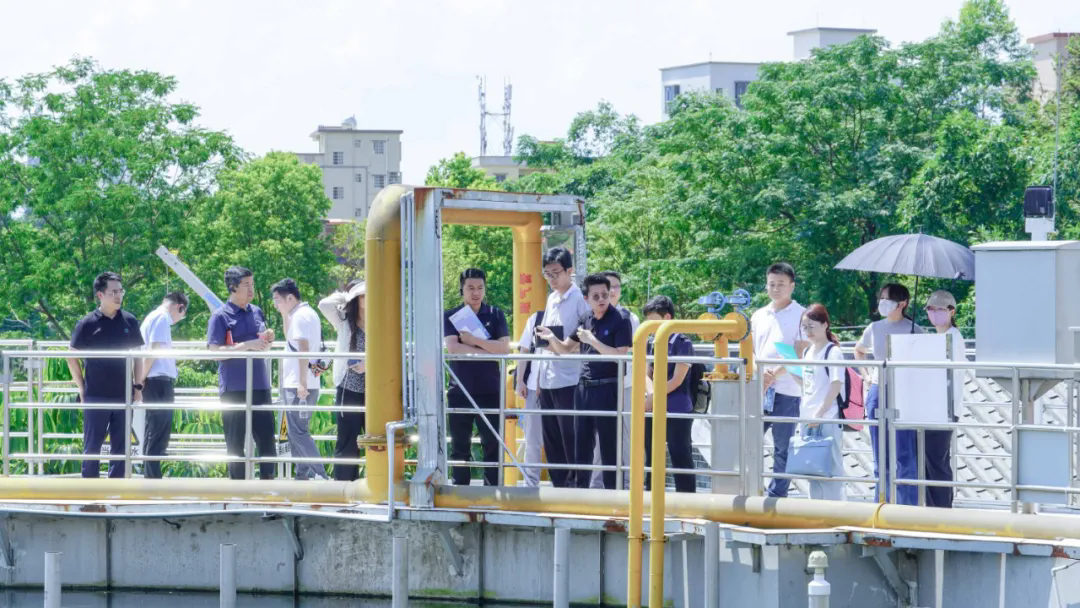 當天下午,考察團一行深入鵬凱環(huán)境凈綏園(肇慶四會市碧海灣裝配式污水廠項目10000T/D)參觀考察,依次參觀了污水廠各單元的運行情況,并深入了解了鵬凱圓-低碳高效裝配式污水廠的創(chuàng)新技術反應機理與關鍵路線??疾靾F一行對我司在技術革新與環(huán)境融合方面的顯著成就給予了高度評價,紛紛表示鵬凱環(huán)境凈綏園其獨特的花園式設計理念、高效的處理能力,智能的運維管理,為傳統(tǒng)污水廠的建造和轉型升級提供了全新的視角與思路。