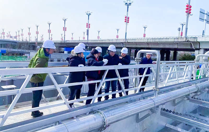 鵬凱環(huán)境董事長兼總裁王國彬?qū)晌粚<乙恍械牡絹肀硎玖藷崃业臍g迎。他表示,杭世珺老師與王社平院長作為業(yè)內(nèi)資深專家,他們的到來是對(duì)鵬凱環(huán)境技術(shù)實(shí)力和項(xiàng)目成果的一次重要檢驗(yàn),也是汲取先進(jìn)經(jīng)驗(yàn)、提升自身水平的寶貴機(jī)會(huì)。調(diào)研期間,兩位專家深入項(xiàng)目現(xiàn)場,對(duì)鵬凱圓裝配式污水廠的運(yùn)行邏輯、工藝參數(shù)、工程實(shí)施等各個(gè)維度進(jìn)行了細(xì)致的考察與分析,并對(duì)各個(gè)環(huán)節(jié)進(jìn)行了專業(yè)指導(dǎo)。