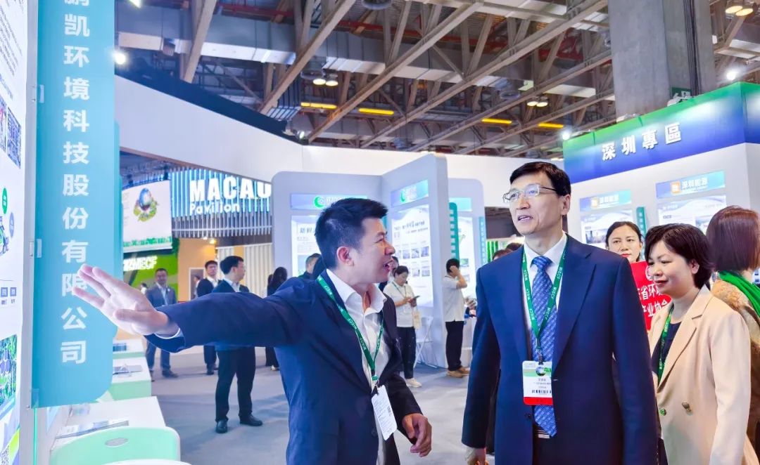 展會(huì)首日,廣東省人民政府副省長(zhǎng)、副總林長(zhǎng)張少康,廣東省人民政府副秘書(shū)長(zhǎng)劉華偉,廣東省生態(tài)環(huán)境廳黨組書(shū)記、廳長(zhǎng)徐曉霞,廣東省生態(tài)環(huán)境廳副廳長(zhǎng)羅世衍,廣東省生態(tài)環(huán)境廳二級(jí)巡視員許金洲,廣州市生態(tài)環(huán)境局黨組書(shū)記、局長(zhǎng)王保森,廣州市生態(tài)環(huán)境局黨組成員、副局長(zhǎng)李新科,中國(guó)環(huán)境保護(hù)產(chǎn)業(yè)協(xié)會(huì)黨委書(shū)記、會(huì)長(zhǎng)郭承站,廣東省環(huán)境保護(hù)產(chǎn)業(yè)協(xié)會(huì)會(huì)長(zhǎng)麥建波等領(lǐng)導(dǎo)先后親臨鵬凱環(huán)境展位考察指導(dǎo)。鵬凱環(huán)境董事長(zhǎng)兼總裁王國(guó)彬向巡展領(lǐng)導(dǎo)就我司生產(chǎn)經(jīng)營(yíng)狀況,以及在低碳治水技術(shù)創(chuàng)新與轉(zhuǎn)化應(yīng)用情況作了詳細(xì)匯報(bào)。