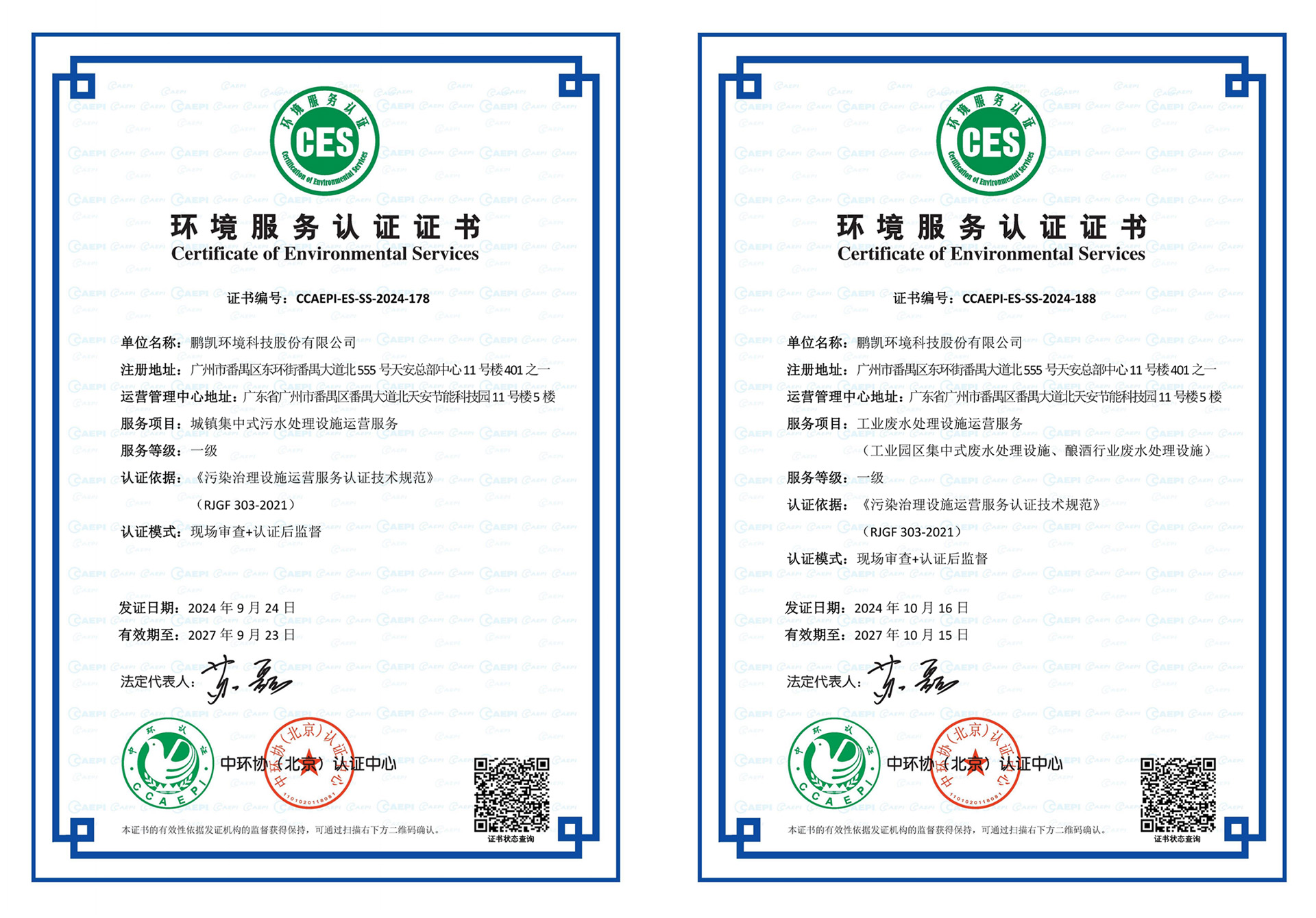 市政污水及工業(yè)廢水運營能力評價雙一級認證