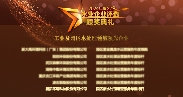 鵬凱環(huán)境憑借其在工業(yè)廢水處理領(lǐng)域的優(yōu)異表現(xiàn),榮膺“2024年度工業(yè)及園區(qū)水處理領(lǐng)域領(lǐng)先企業(yè)-園區(qū)廢水處理運營服務(wù)年度標(biāo)桿”獎項。