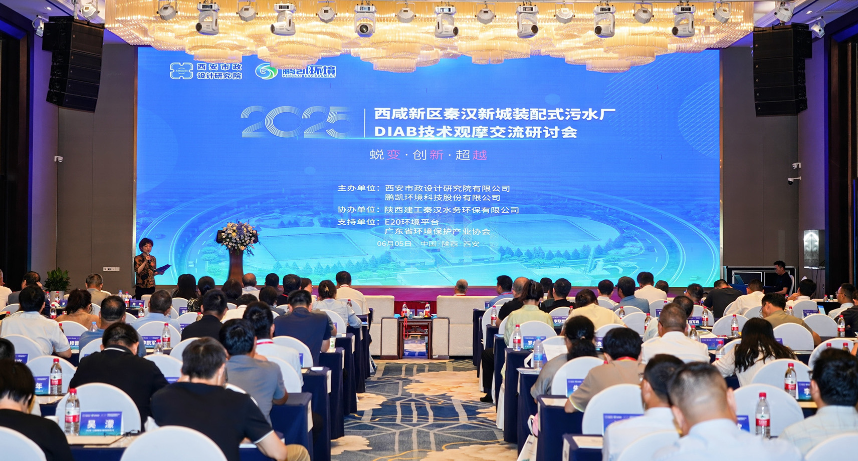 蛻變·創(chuàng)新·超越。6月5日下午,由西安市政設(shè)計(jì)研究院有限公司、鵬凱環(huán)境科技股份有限公司聯(lián)合舉辦的“西咸新區(qū)秦漢新城裝配式污水廠DIAB技術(shù)觀摩交流研討會(huì)”在千年古都西安盛大啟幕。會(huì)議圍繞 “雙碳戰(zhàn)略” 下污水處理技術(shù)創(chuàng)新發(fā)展、DIAB4.0裝配式污水廠技術(shù)的創(chuàng)新與實(shí)踐等核心議題,共探行業(yè)技術(shù)革新與綠色轉(zhuǎn)型發(fā)展新路徑。