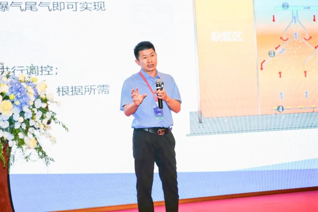 華南理工大學(xué)環(huán)境與能源學(xué)院教授、鵬凱環(huán)境集團(tuán)研究院院長(zhǎng)胡勇有作《側(cè)循環(huán)好氧三相分離多級(jí)AO污水處理系統(tǒng)4.0》主題演講,圍繞沉水園項(xiàng)目側(cè)循環(huán)A/O/O污水處理系統(tǒng),分析運(yùn)行效果、工藝機(jī)理,并提出結(jié)構(gòu)優(yōu)化和生物強(qiáng)化等調(diào)控策略。并從結(jié)構(gòu)優(yōu)化、功能強(qiáng)化及智能化提升等方面詳細(xì)介紹鵬凱圓DIAB反應(yīng)器1.0~4.0迭代升級(jí),以科技創(chuàng)新賦能污水處理技術(shù)低碳高效發(fā)展。