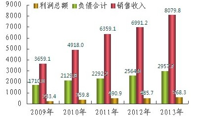 圖:2009年~2013年我國規(guī)模以上泵、閥門、壓縮機及類似機械制造行業(yè)盈利情況